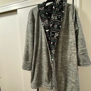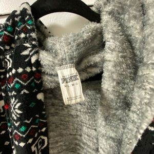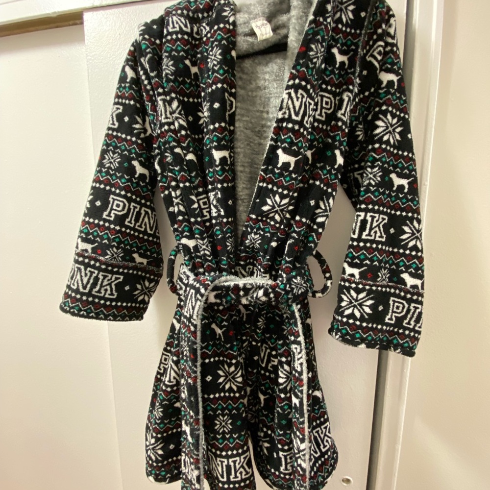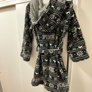 Slightly used plush robe from Pink, patterned and gray side