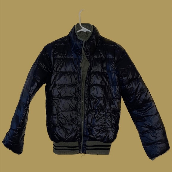 Reversible puffer jacket. So cute and no wear, just too small for me! No tag, since it’s reversible. Fits like a XS or S. Super soft puffer material.