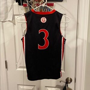 This sports tank top for kids features a bold black and red design. Perfect for active days, it offers comfort and style.