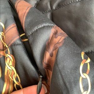 This vest is Reversible, Quilted and paired with a stylish print, has the signature logo emblem, has corduroy trimmed accents, and slip and zip closure pockets.