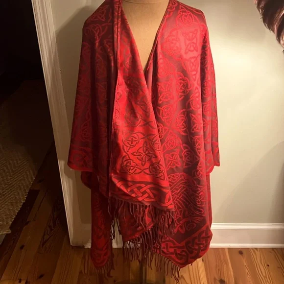 Irresistible Irish cape. Never worn. Excellent condition. Width 52”. Length 35” with 3.5” fringe.