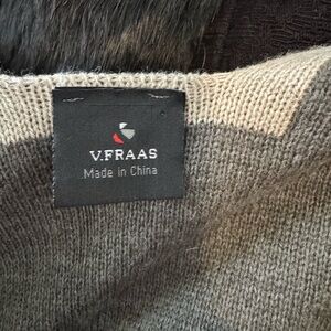 Reversible wrap in gray, taupe with wine colored trim.