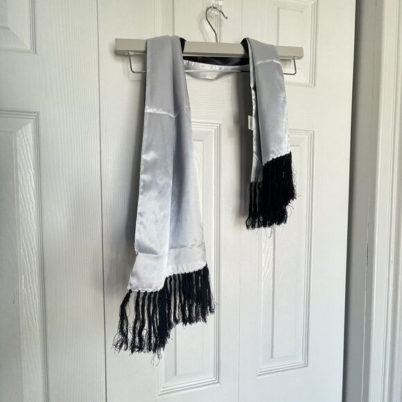 Reversible Scarf Fringe Gray And Black 38 x 12 Polyester