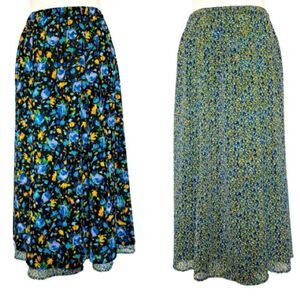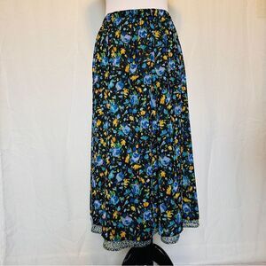 Vintage 1990s reversible floral skirt. Sheer rayon fabric. Elastic along the back waistband. Straight silhouette. Flowy flounce hemline. Maxi length.