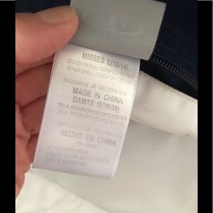 EUC! This reversible Spring jacket in tones of blue and white is perfect for the transition into warmer weather! Zipper front with Velcro closure; zipper & Velcro front angled pockets; elastic wrists with Velcro to adjust to your liking. Worn only a few times. When wearing as a solid color, slight pulls on back of fabric as shown in pic, but hardly noticeable.