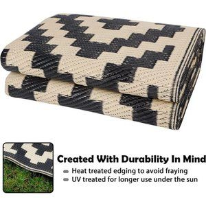 🧿PREMIUM QUALITY: This outdoor rug for the beach, camper, or front porch is derived from 100% virgin polypropylene, along with edging that is heat treated to avoid fraying, soft and durable, low-maintenance. The breathable material will not hurt grass or scratch your deck.