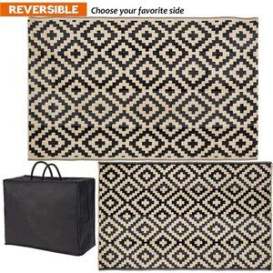🧿EASY CLEANING & PORTABLE: For a quick clean simply sweep away dirt with water and airing it dry. Reversible outdoor rugs can be folded into compact size for easy storage, it comes with a carrying bag for added convenience. Suitable for an afternoon outing or an RV road trip.