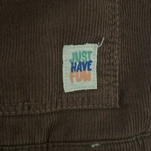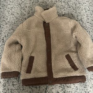 Dark brown corduroy on one side, fuzzy teddy material on the other. Perfect used condition. Great for colder weather!