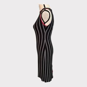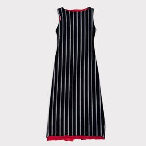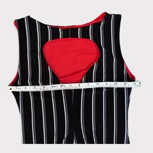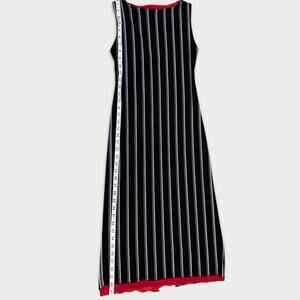 - **Reversible Design**: Two completely different looks in one dress - classic pinstriped black and vibrant red