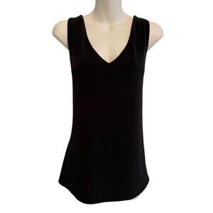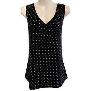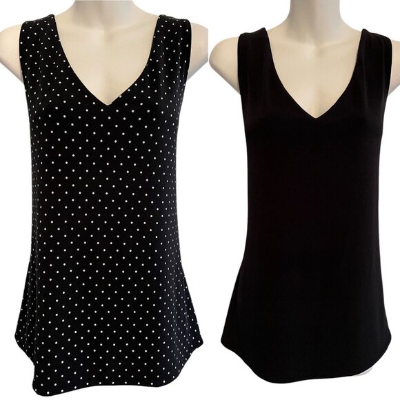 Reversible Tank Shell Top Black and White Polkadot & Black V-Neck Sleeveless Lg
