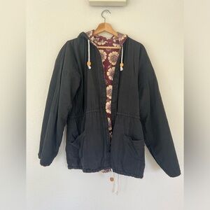Hooded tapestry utility jacket