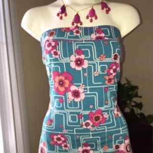 Adorable reversible top that is perfect for this season. VERY TRUE TO SIZE. Colorful flowers on one side and a bold fuchsia color on the other side.