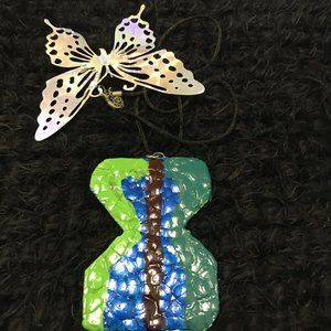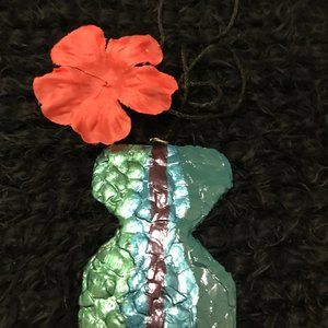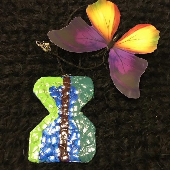 Beautiful unique reversible handmade necklace. If you want something unique, something that no one else has, then this necklace is for you. It’s exclusive in that there are no two that are identical. It’s not made by a machine or mass product, it’s uniquely painted by hand. My sister designed it and she makes many other jewelry pieces & other items. She makes bracelet from toilet paper rolls, plant holders from tea bags, necklaces from cardboard & egg shells, animal decor from bottles & collectible dolls from newspaper. If you want something that is one of a kind, something that is unique, something exclusive, then this piece and many other items are in my shop.