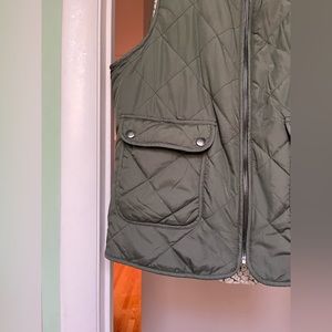 Reversible unbranded boutique olive green vest- worn a few times but little to no wear & tear. Size Medium.