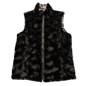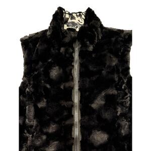 Reversible Vest Small Animal Print & Faux Fur Black Zip Up Sleeveless Jacket
