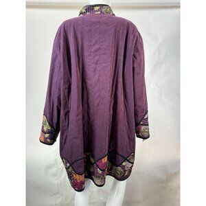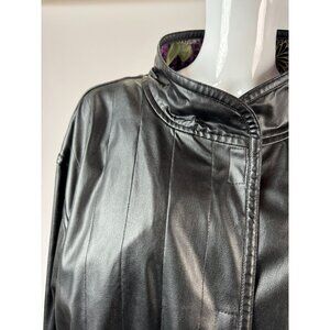 Reversible Vintage 80s Womens Coat With Floral Quilted Pattern & Black Faux Leat