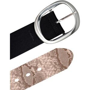 Features: This stylish belt offers two looks in one — simply flip the statement buckle to switch between sides. Made from a soft, comfortable faux leather blend, it fits snugly with seven adjustable holes for the perfect fit. The 2-inch wide strap is designed to highlight your waist and elevate your outfit, whether casual or dressy.