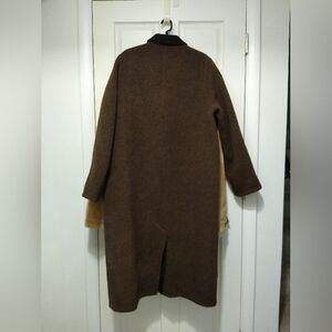 Stay warm and stylish with this reversible brown & black long wool coat. No tag, fits like an XL. Perfect for chilly fall nights. Smoke-free, pet-friendly home.