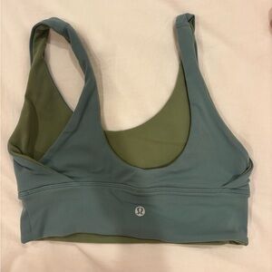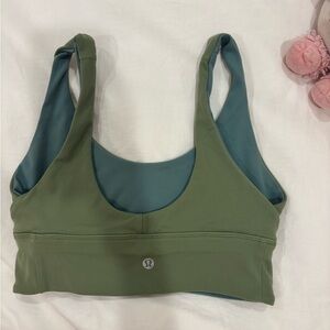Experience comfort and style with this reversible sports bra in teal and olive. Perfect for workouts or casual wear.