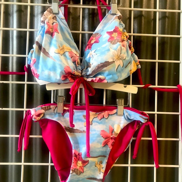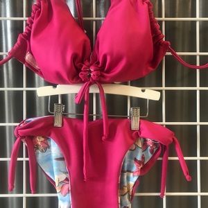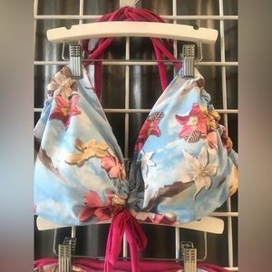 2 suits in one. Solid Fuchsia pink or Hawaiian print. Top in D-DD and bottom in choice of small, med or large