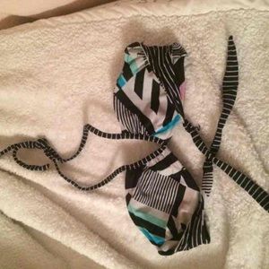 reversible bikini top, size medium! Ties in front and back, removable padding. TAGS: swimsuit, bathing suit, beach, summer, pool, bikini, black, white, striped, padded, B cup, A cup, C cup, M, colorful, pink, green, blue, cheap, cute,