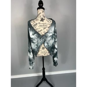 Reversible black and white tie dye crisscross cutout sweatshirt