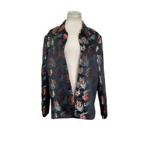 Reversible black red floral embroidered Asian inspired blazer size Medium