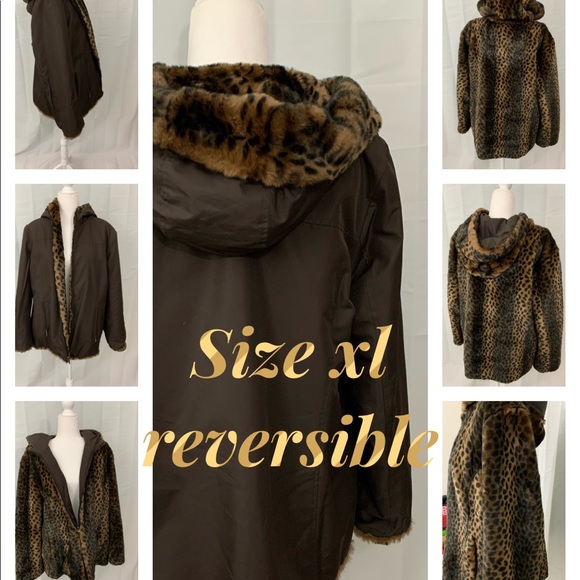Beautiful reversible coat leopard print very soft and brown on reverse side. A must have!