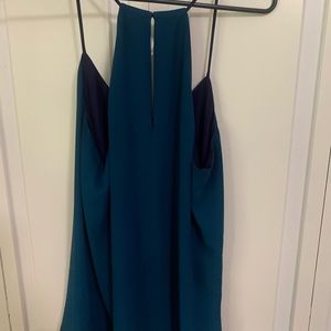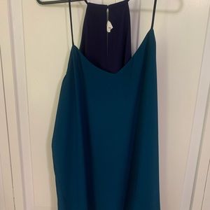 Size medium reversible top from express. This top is navy and a dark turquoise. Slight color difference on the turquoise side. Chiffon material with a nice flow. Smoke free home.