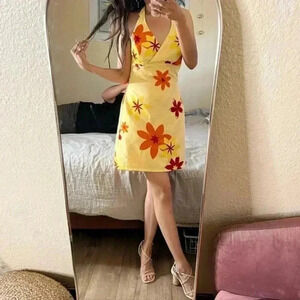 Reversible halter dress y2k striped floral vintage Hawaiian striped mini