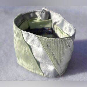 Reversible handmade satin silver mint ribbon fabric cuff bracelet tween