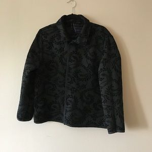 EUC reversible black jacket accented with purple and silver on one side; black on black on the other side.