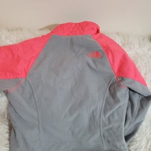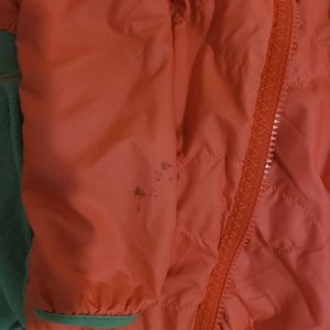 Coral and gray reversible jacket. Has a broken zipper and stain on one sleeve as pictured. Have not tried to spot clean it away. Priced to sell.