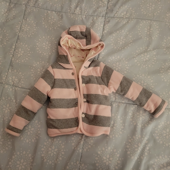 Reversible jacket. Stripes on one side and Bees on the other. 100% cotton. Very warm. Worn once.
