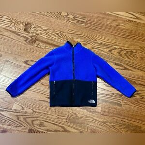 Reversible fleece jacket from northface size 7/8. Royal blue and black. Good used condition.