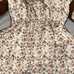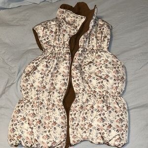 Reversible! One side is a brown ribbed corduroy material and the other side is a satiny floral print.