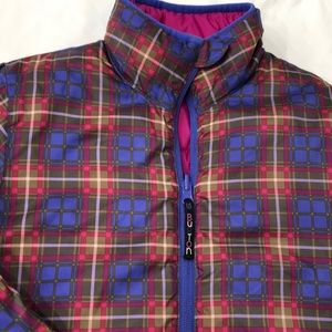 Barely worn and in great shape. Very warm in cold weather and reversible! Awesome when in cold weather or skiing!!