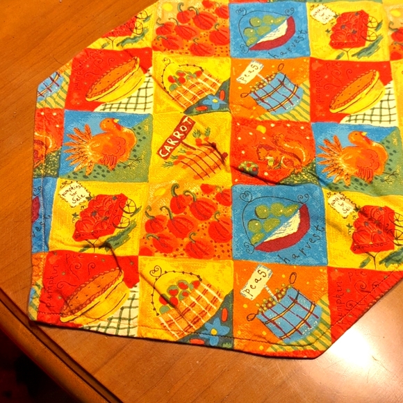 Thanksgiving and Christmas reversible table runner, cotton prints, 40" by 13 1/4.