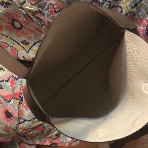 Large Brown/cream leather reversible tote bag with magnetic snap closure. Minimal wear and tear.