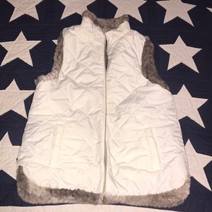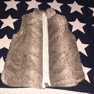 Reversible vest, faux fur on one side, ivory and gold detail on the other. Because it is reversible tags are off so that it can be worn both ways.