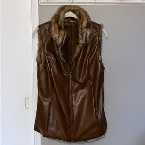 Faux fur/faux leather reversible vest, zip up front, pockets on both sides. Brand new with tag, would make a great gift!