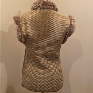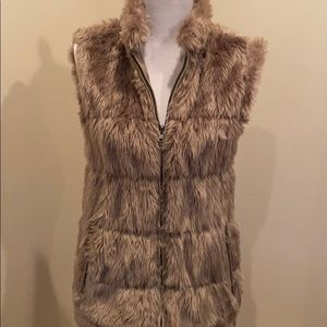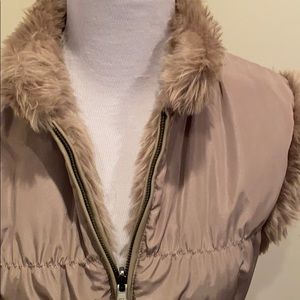 Faux fur or puffer with fur details. Both sides have 2 pockets. Zipper closure