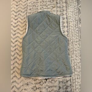 Reversible vest, one side is a sage green color and the other is white sherpa! Excellent condition! Size is unknown but it fits like a S/M!