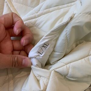 Off white and grey with pockets. Size Large/Xtra large