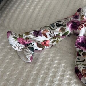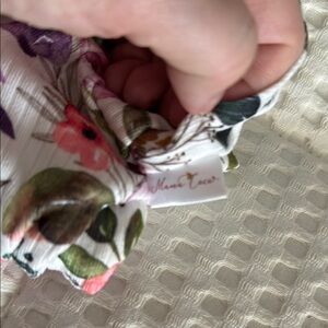 This charming bodysuit features a delicate watercolor floral pattern in pink and burgundy on a crisp white base. The long sleeves and soft, lightweight fabric make it perfect for a fresh, spring-inspired look.