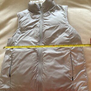Stylish and warm, white on one side and light grey on the other, puffer vest. (Great to bundle with my black puffer vest listing), pockets, perfect for cooler fall days and evenings and to layer over a flannel shirt as the temps begin to drop. Very on trend and functional as well. Two vests for the price of one.