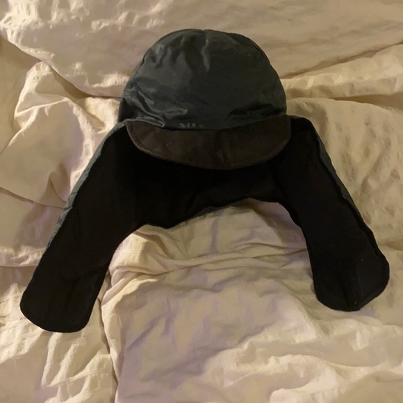 Black/green reversible winter hat with velcro straps