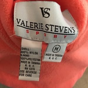 Black nylon reverses to salmon cozy fleece. Gathered at wrist; gathered waist, 4-pockets, attached hood & zips closed. Excellent, hardly worn condition! No signs of wear! Smoke/pet free home. Chest measures 24.5" when zipped from pit to pit. Length measures 30.5 from shoulder to bottom hem.