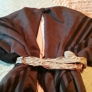 Black and Grey polyester shawl. Perfect for the cool nights. Covers your arms well!