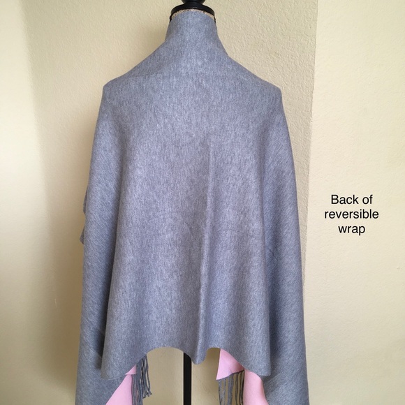 Pink on one side, gray on the other with fringe.